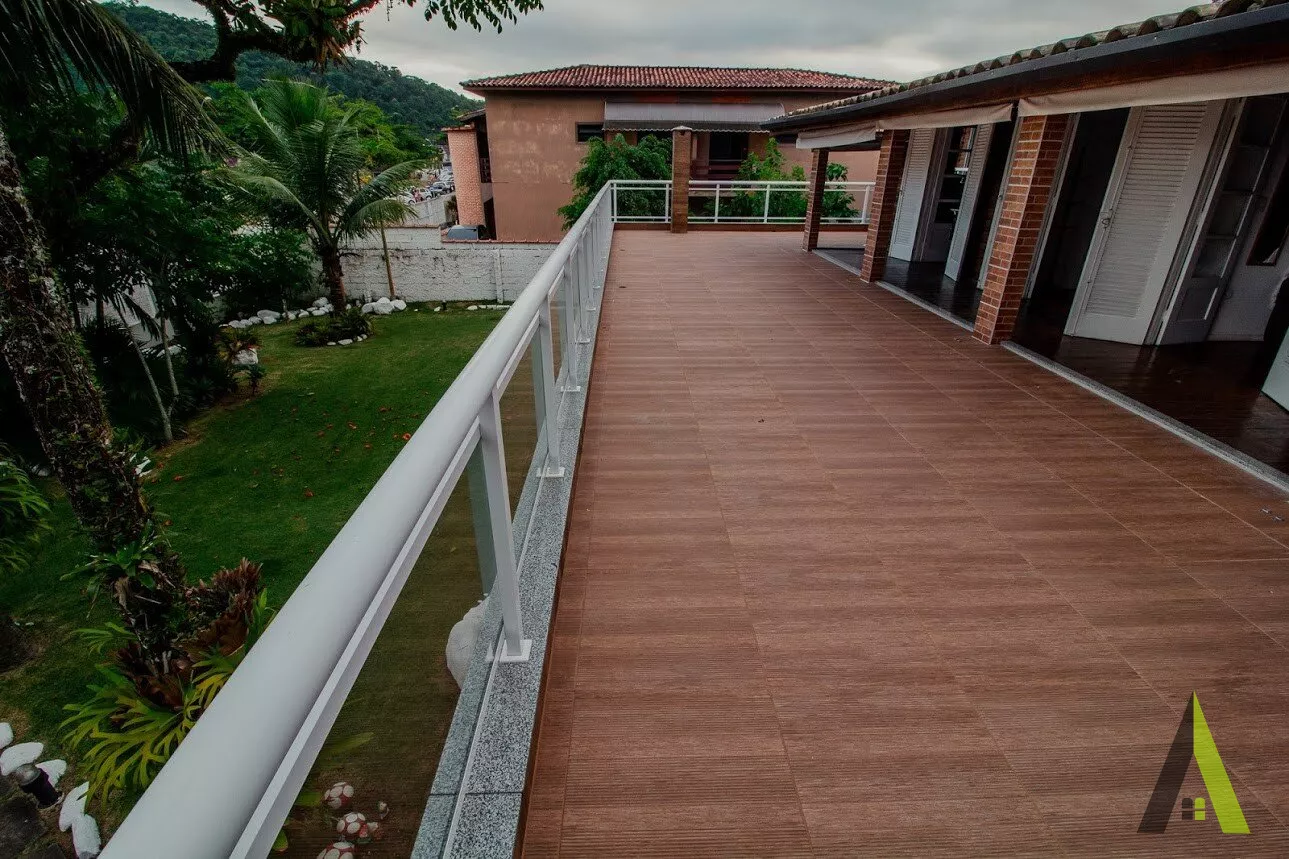 ⁃Sacada de 90m2 em frente aos quartos com vista para a praia.