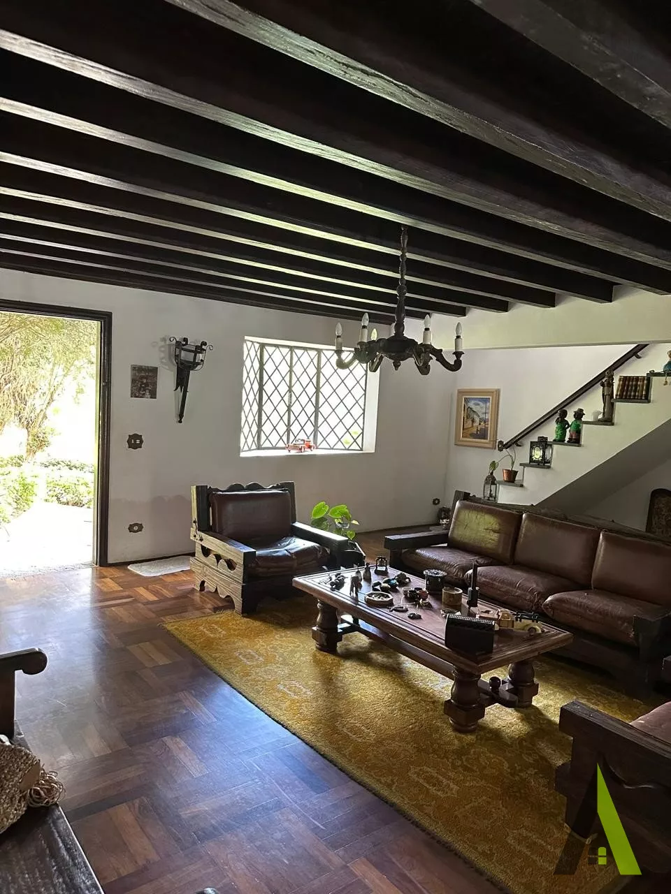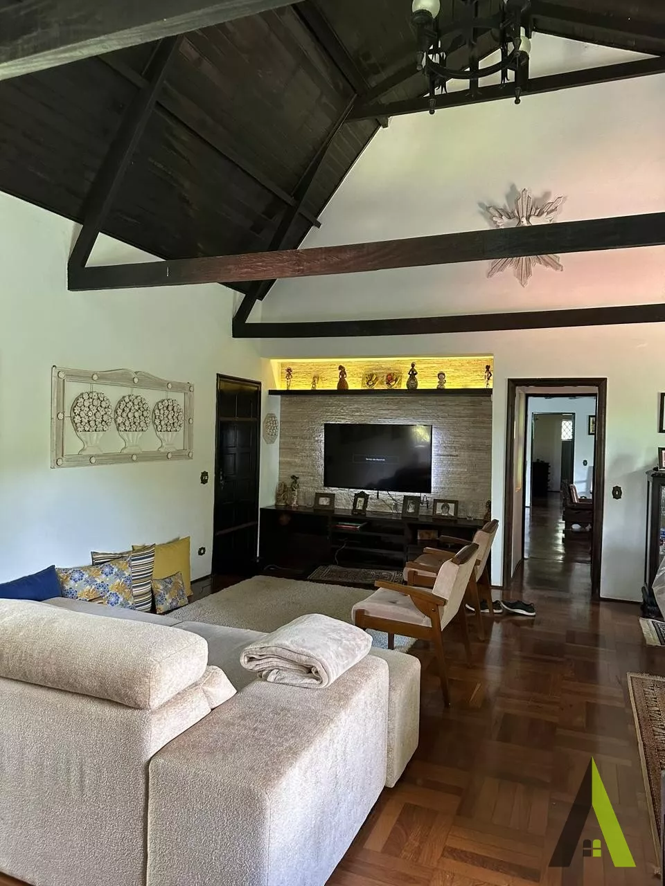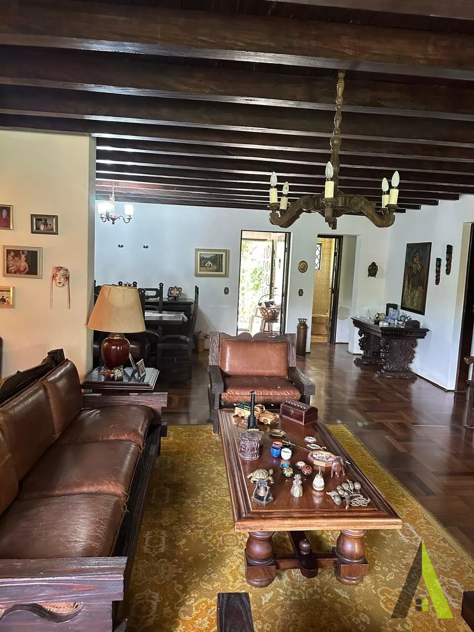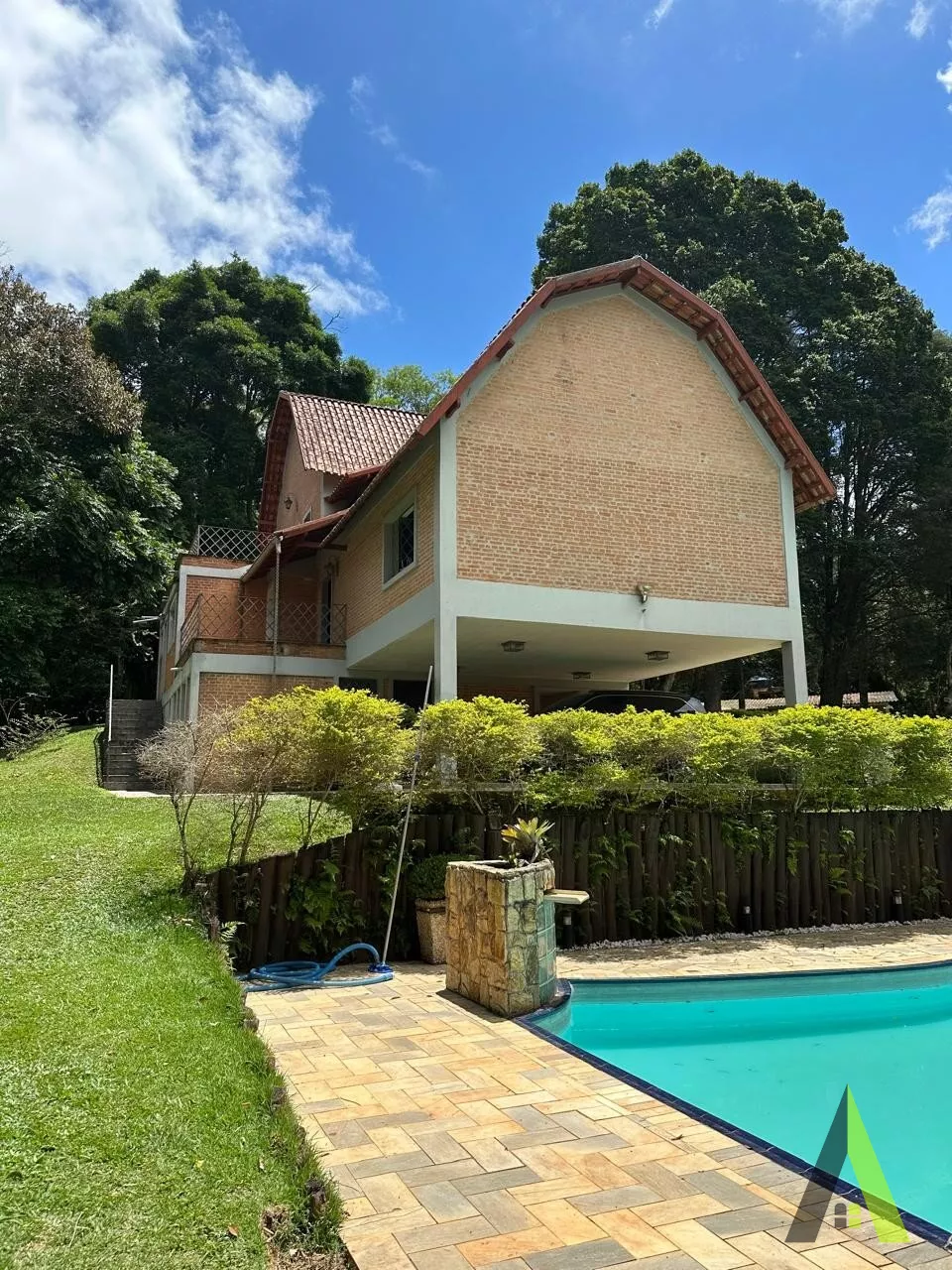 ✨Casa em estilo normando, com cerca de 400m2 de área construída (apenas a casa). Acabamento fino, com tacos de Ipê, teto e telhados revestido com madeiras nobres, como peroba rosa.
