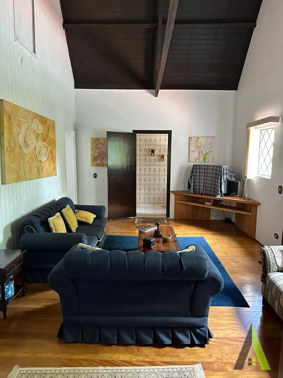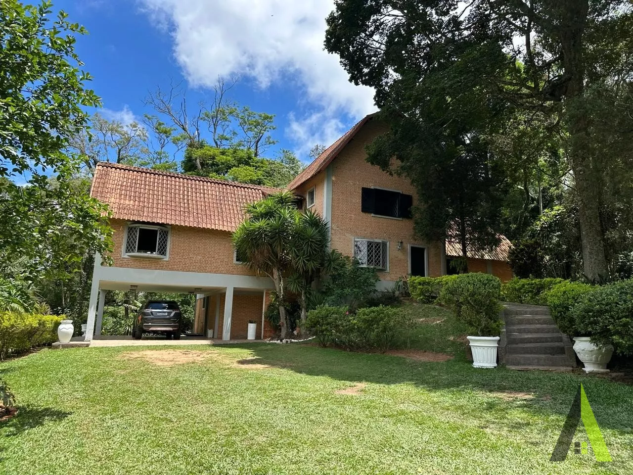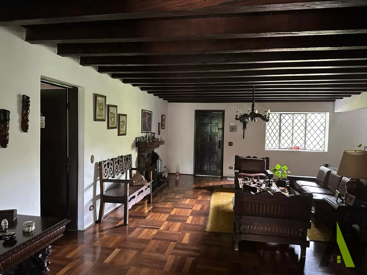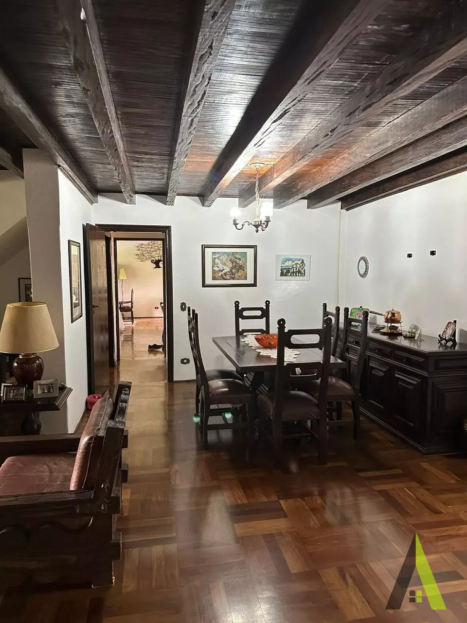 ✨Casa em estilo normando, com cerca de 400m2 de área construída (apenas a casa). Acabamento fino, com tacos de Ipê, teto e telhados revestido com madeiras nobres, como peroba rosa.