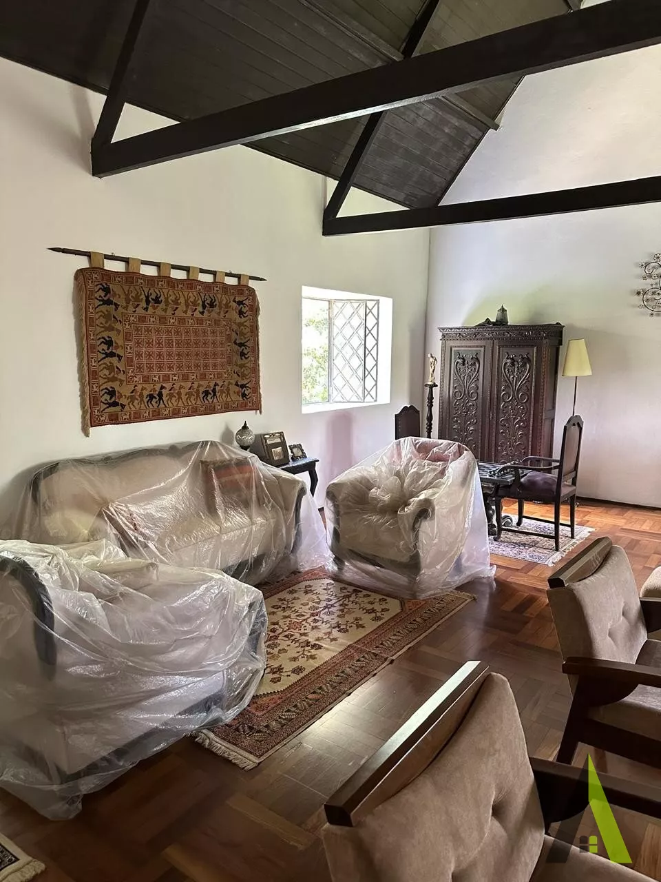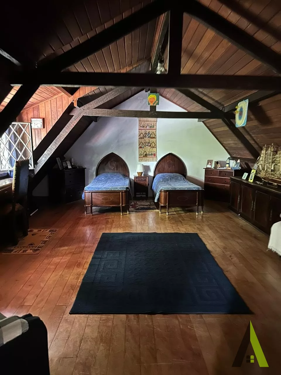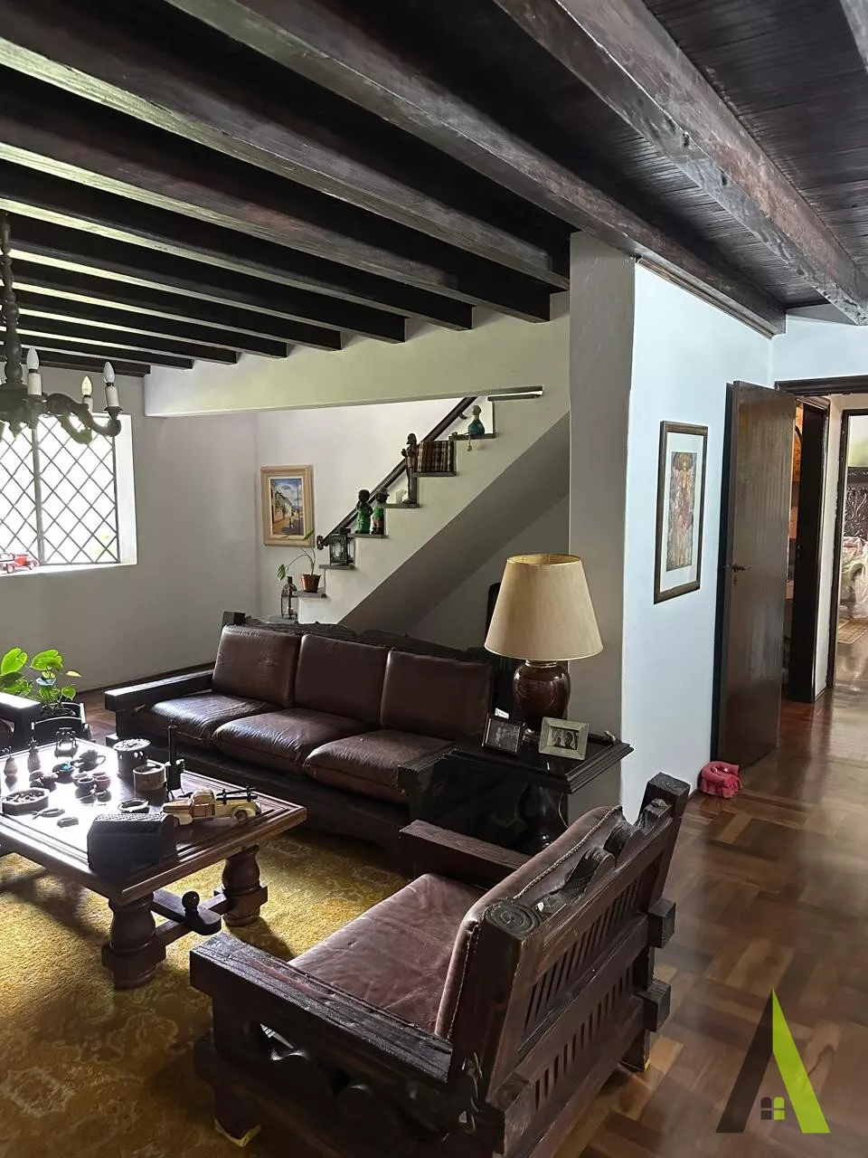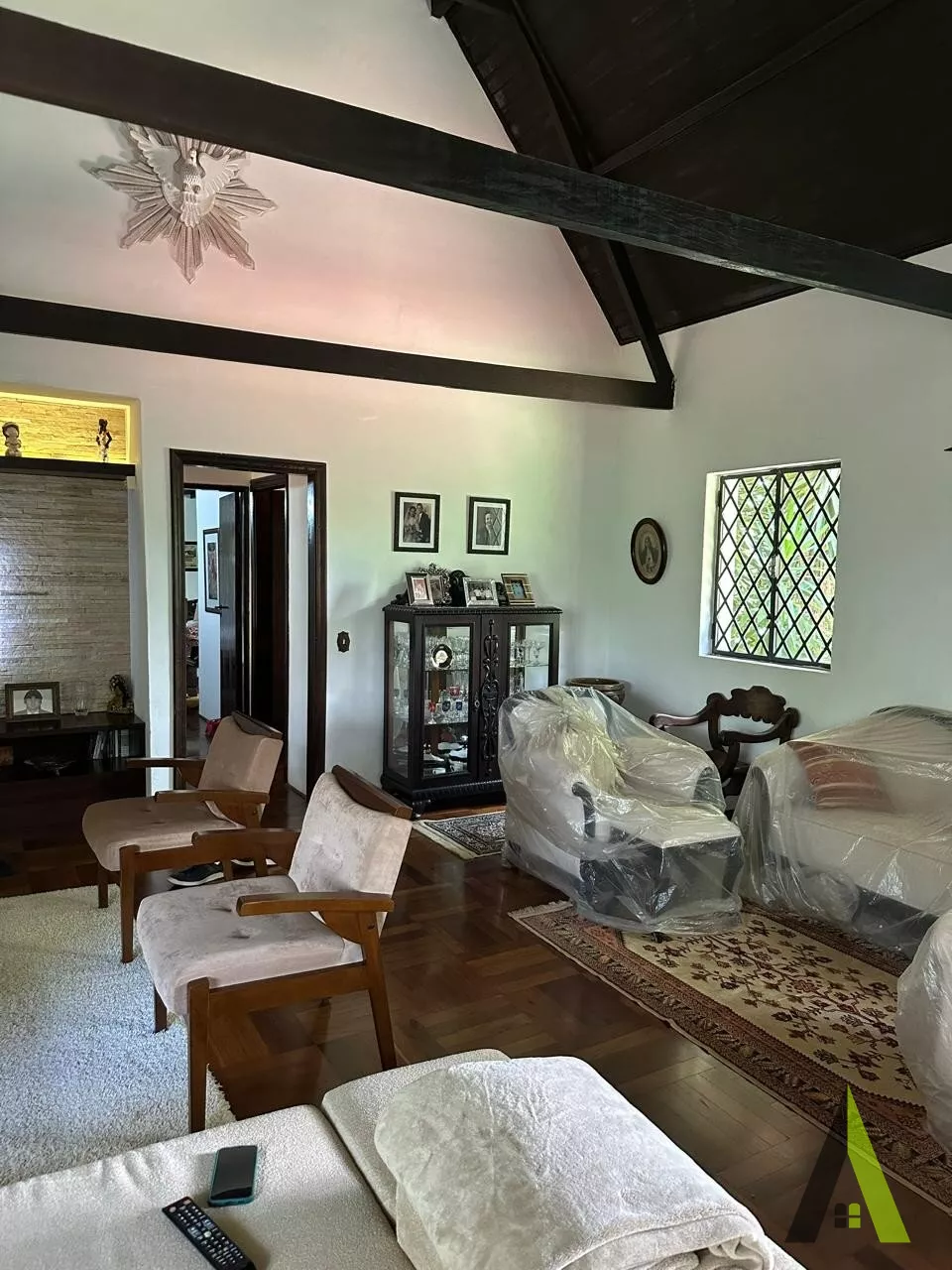 ✨Casa em estilo normando, com cerca de 400m2 de área construída (apenas a casa). Acabamento fino, com tacos de Ipê, teto e telhados revestido com madeiras nobres, como peroba rosa.