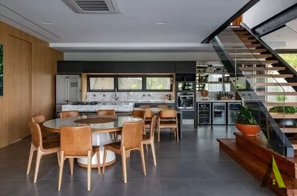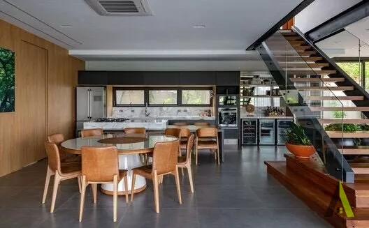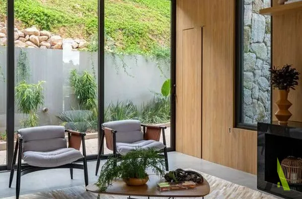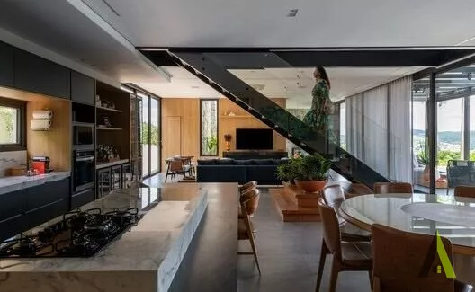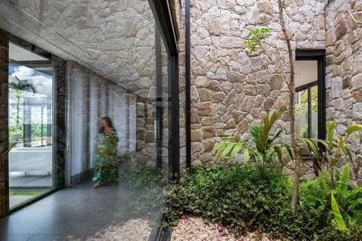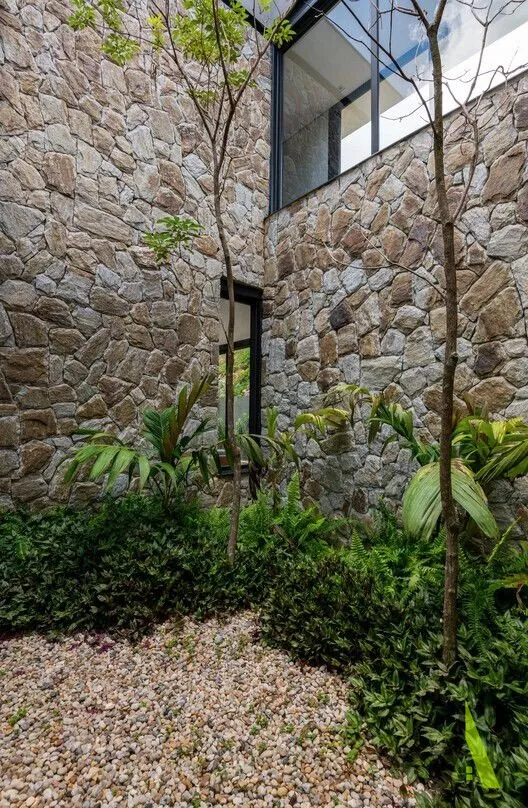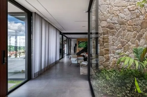 ✨Ao entrar na casa, os visitantes são recebidos por um jardim interno que integra harmoniosamente a sala de estar, a sala de jantar e a cozinha. A natureza foi trazida para dentro de casa através de uma combinação de plantas e elementos naturais, como pedras e madeira. Quartos espaçosos foram projetados para proporcionar conforto e privacidade, enquanto grandes janelas e varandas oferecem vistas panorâmicas de tirar o fôlego.