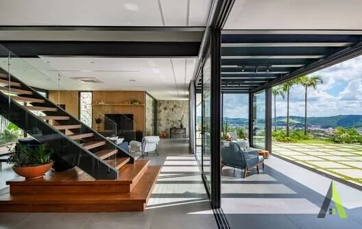 ✨ Em um cenário pitoresco na cidade de São Roque, Estado de São Paulo, uma casa excepcionalmente projetada surge nas encostas da montanha. Combinando uma estrutura metálica elegante, amplos painéis de vidro e uma conexão harmoniosa com a natureza circundante, esta residência se destaca como um retiro contemporâneo perfeito para um casal jovem e seu filho. Com quartos e área de lazer voltados para o pôr do sol, a casa oferece uma experiência única de viver em simbiose com a mata atlântica preservada. O local escolhido, cercado por montanhas e vegetação, inspirou a arquiteta a criar uma casa que celebrasse a natureza e proporcionasse um refúgio tranquilo para seus moradores.