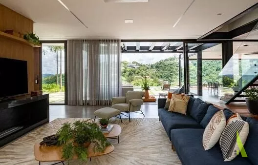 ✨O design interior da casa é igualmente impressionante. A natureza foi trazida para dentro de casa através de uma combinação de plantas e elementos naturais, como pedras e madeira. Quartos espaçosos foram projetados para proporcionar conforto e privacidade, enquanto grandes janelas e varandas oferecem vistas panorâmicas de tirar o fôlego. A suíte principal, em particular, possui uma vista deslumbrante da paisagem montanhosa e do horizonte ao poente. Cada quarto foi cuidadosamente projetado para ser um refúgio acolhedor e tranquilo, com detalhes que convidam ao relaxamento e ao descanso.