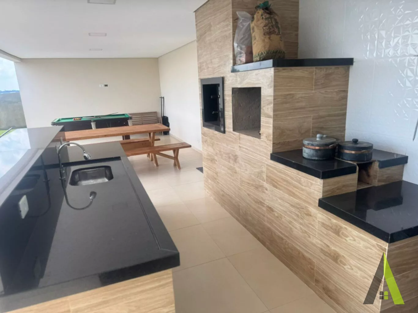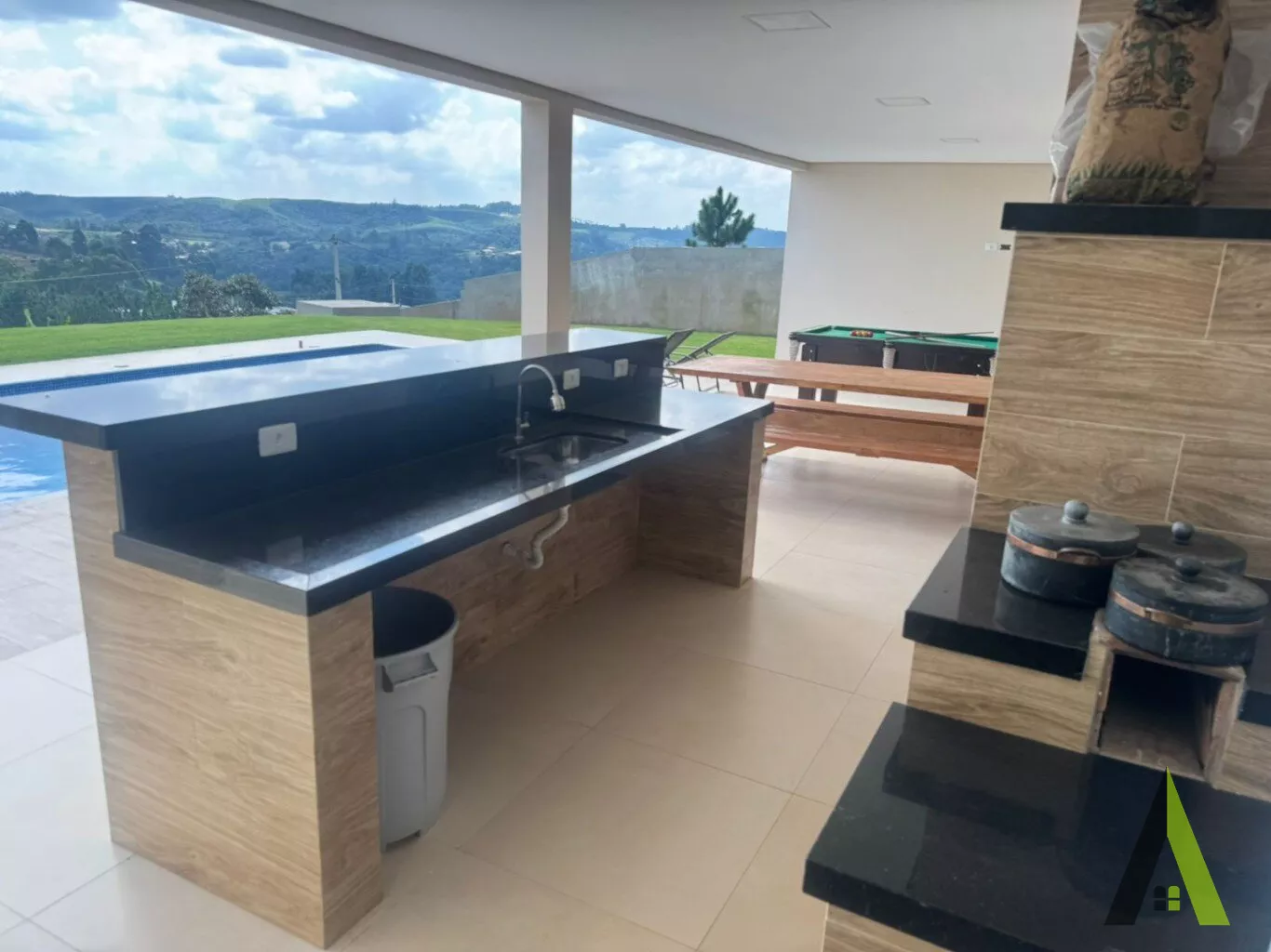 ✨Área gourmet com churrasqueira, forno a lenha e fogão a lenha.