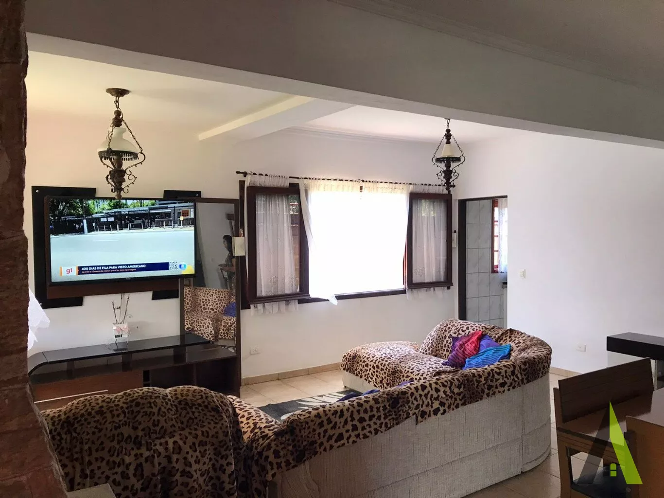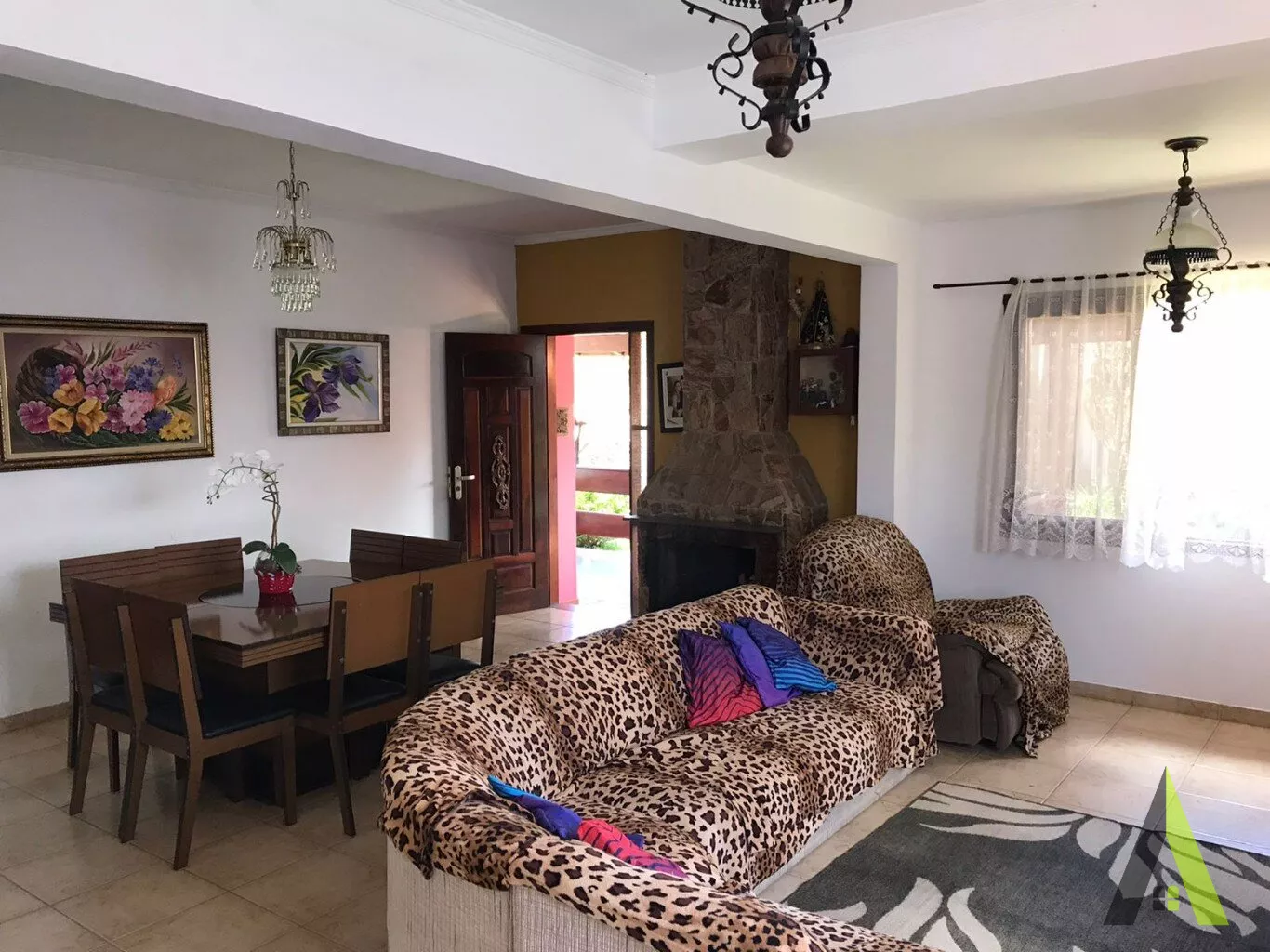 ✨Ampla sala de dois ambientes com lareira.