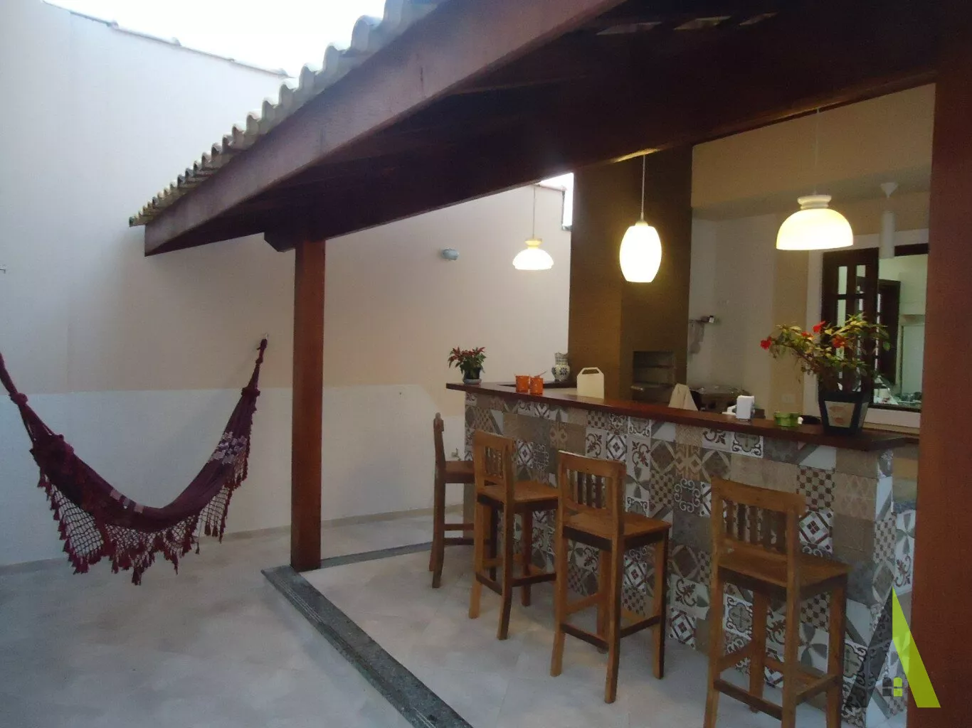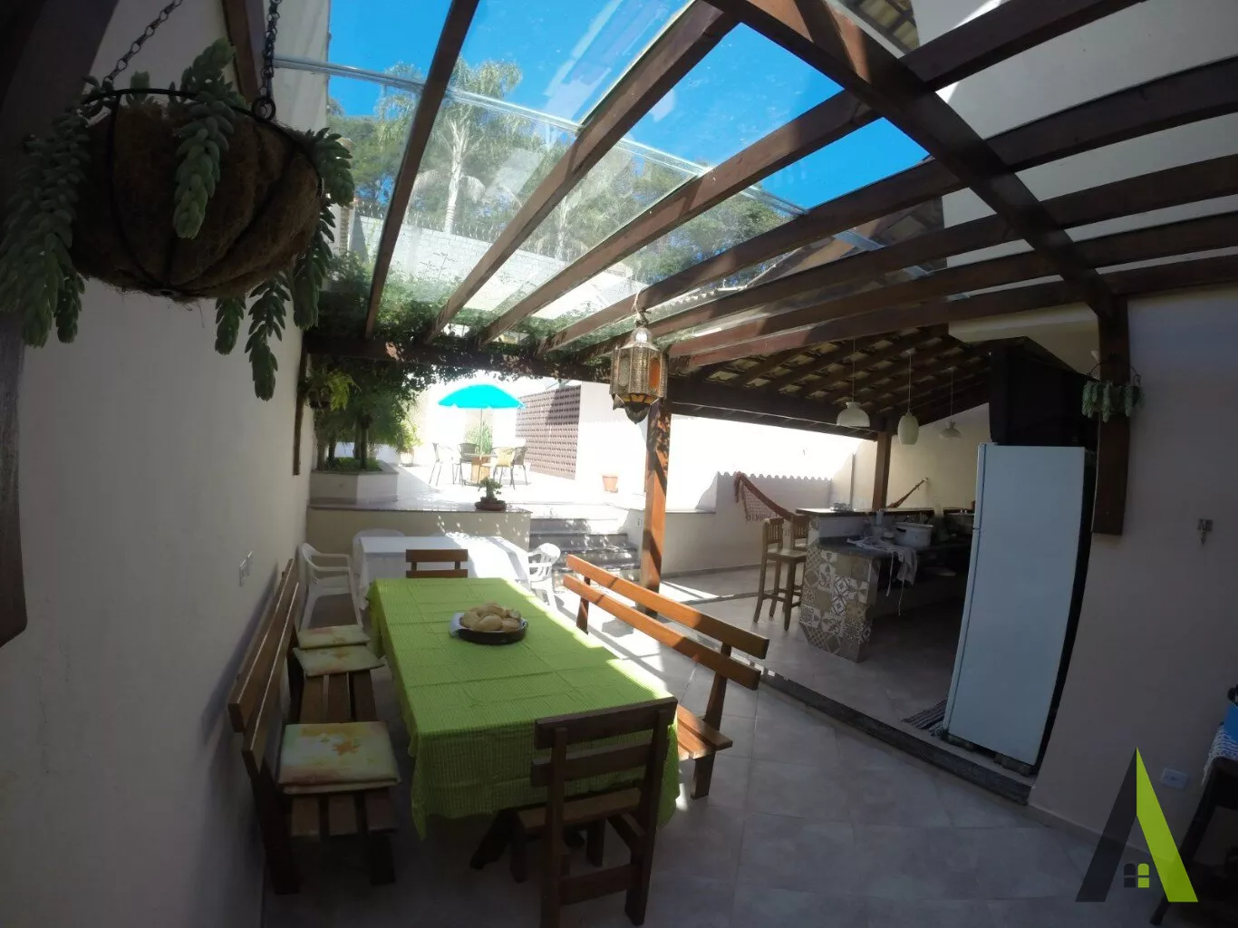 ✨Área gourmet com churrasqueira , forno de pizza , um belo quintal.