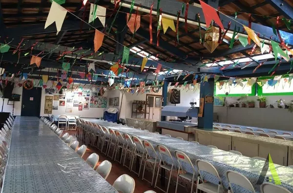 ✨ Refeitório para 180 pessoas com cozinha industrial e dispensa, pia e bazar para bebidas, quartinho com 2 armários embutidos tipo dispensa.