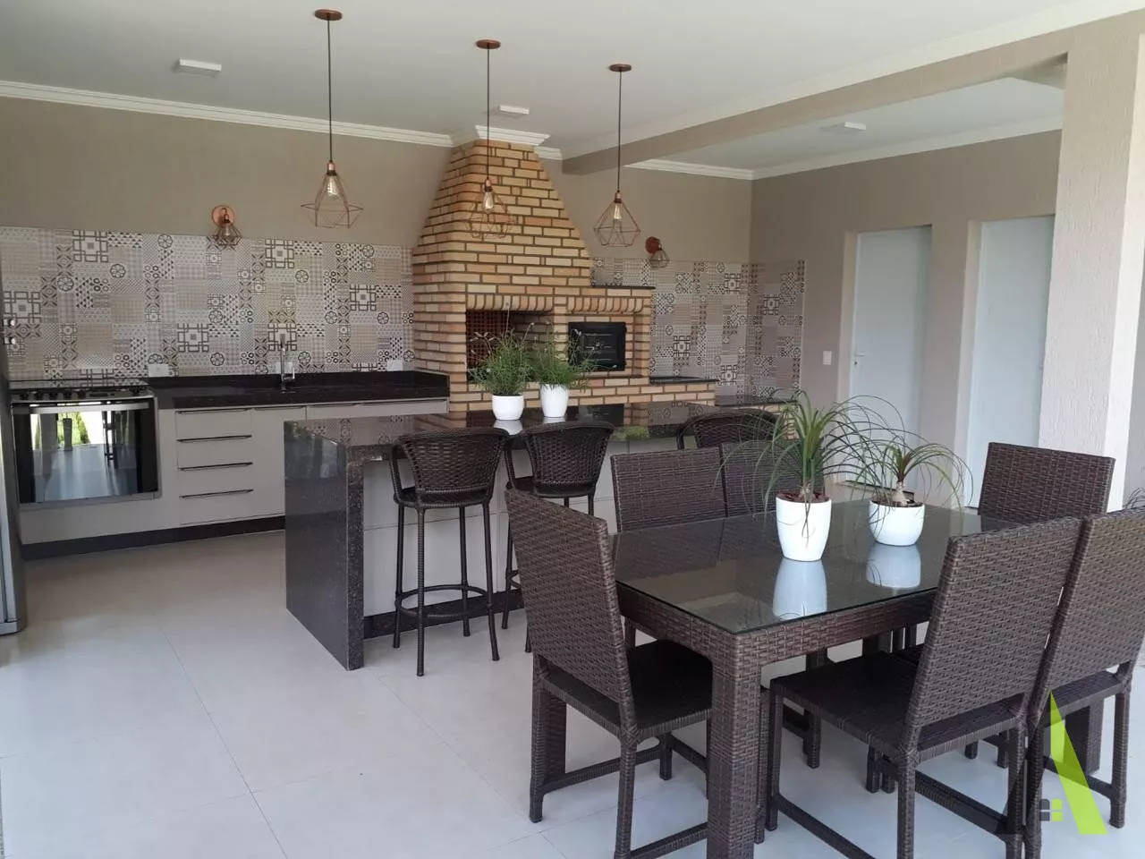 ✨Churrasqueira (com móveis planejados) fogão, balcão com armário embutido.